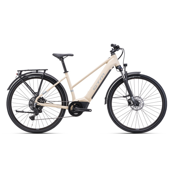 Dámsky crossový elektrobicykel, ktorý je určený na klasickú cykloturistiku, no nezľakne sa ani ľahkého terénu. Pomocnou silou je japonský elektromotor Panasonic GX Power Plus, ktorý je navrhnutý pre optimálny prenos sily pri šliapaní. Poskytuje výkon 250W a krútiaci moment až 75Nm. Dostatočnú zásobu energie na dlhé výlety zabezpečí batéria s článkami LG, ktorá má kapacitu 720Wh a je plne integrovaná v ráme bicykla. Úplne dobitie dosiahne už za cca. 5-6 hodín. Tento systém poskytuje dojazd 60-140km - podľa zvoleného stupňa podpory. V teréne nárazy stlmí odpružená vidlica Suntour XCM32, o bezpečnosť sa starajú hydraulické brzdy Shimano MT200 a so všetkými druhmi nerovností si poradia odolné kolesá WTB STi23 s plášťami WTB Riddler. Súčasťou výbavy je kompletné osvetlenie napájané z batérie a ovládané priamo z riadidiel, integrované blatníky, zadný minimalistický nosič a kompaktný stojan.