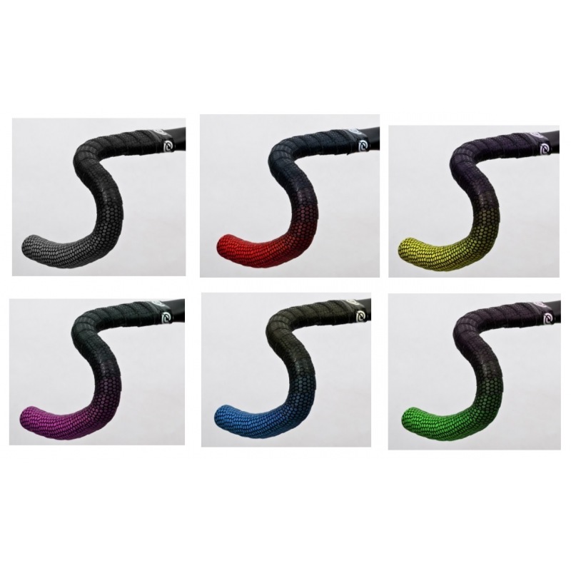Charakteristika: silikonová vrstva vo včelom vzore poskytuje excelentný veľmi príjemne lepkavý a komfortný grip, ombre prechod farby omotávky
