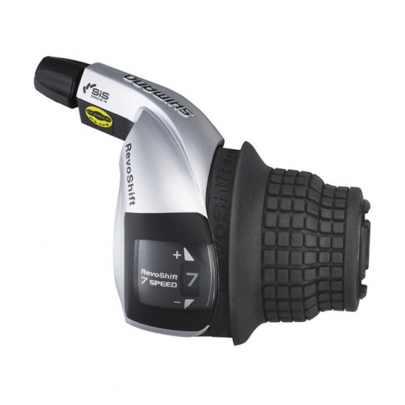 Typ: MTB, Celková váha balenia: 193g, 8 rýchlostné, Pravé, Revo Shift, Typ montáže: Na objímku, s ukazovateľom, strieborné, Materiál: Hliník / Oceľ / Plast
